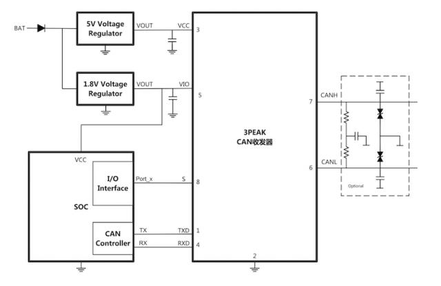 ( b ) 思瑞浦 CAN 收发器和 1.8V SOC 的通讯方案