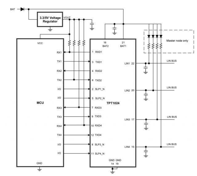 双通道 LIN 收发器 TPT1022Q、四通道 LIN 收发器 TPT1024Q 将两路 LIN 和四路 LIN 集成在一个小封装中,LIN 基本的系统芯片 TPT1028xQ 将 LDO 和 LIN 收发器集成在一个小封装中,更高的集成度可以有效减小系统应用设计的板级面积,帮助系统微型化,还能有效地降低系统成本。
