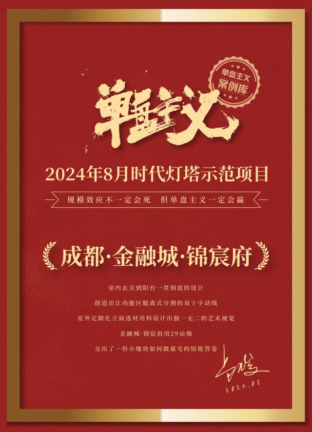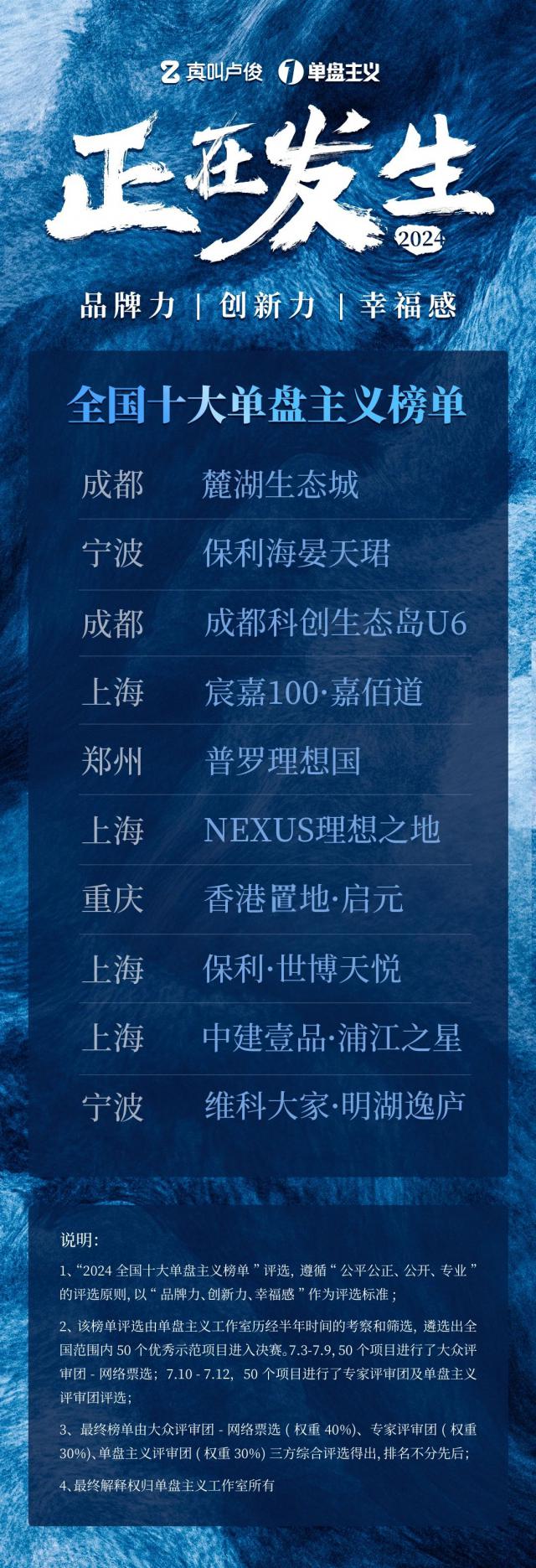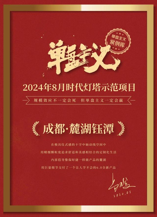 经过多次挑选,最终在众多优秀项目中进行了评选。《2024 全国十大单盘主义榜单