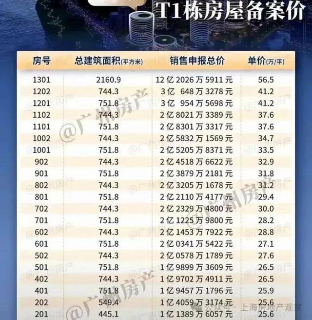 一套面积 2160 平方米复式房,单价高达 56 万 / 平方米,总价超过 12 亿元