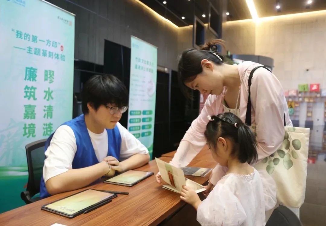 除参观公园外,还有很多市民选择参观室内空间。父母带着孩子们去上海韩天衡美术馆观看“兰室珍-历代文房艺术特展”。在导游区,博物馆专门招募大学生志愿者,提供解疑解惑、支持重点游客等服务,并对文明旅游进行宣传和引导。一旦发现乱排队、大声喧哗等不文明旅游行为,会及时劝阻,规范排队行为。