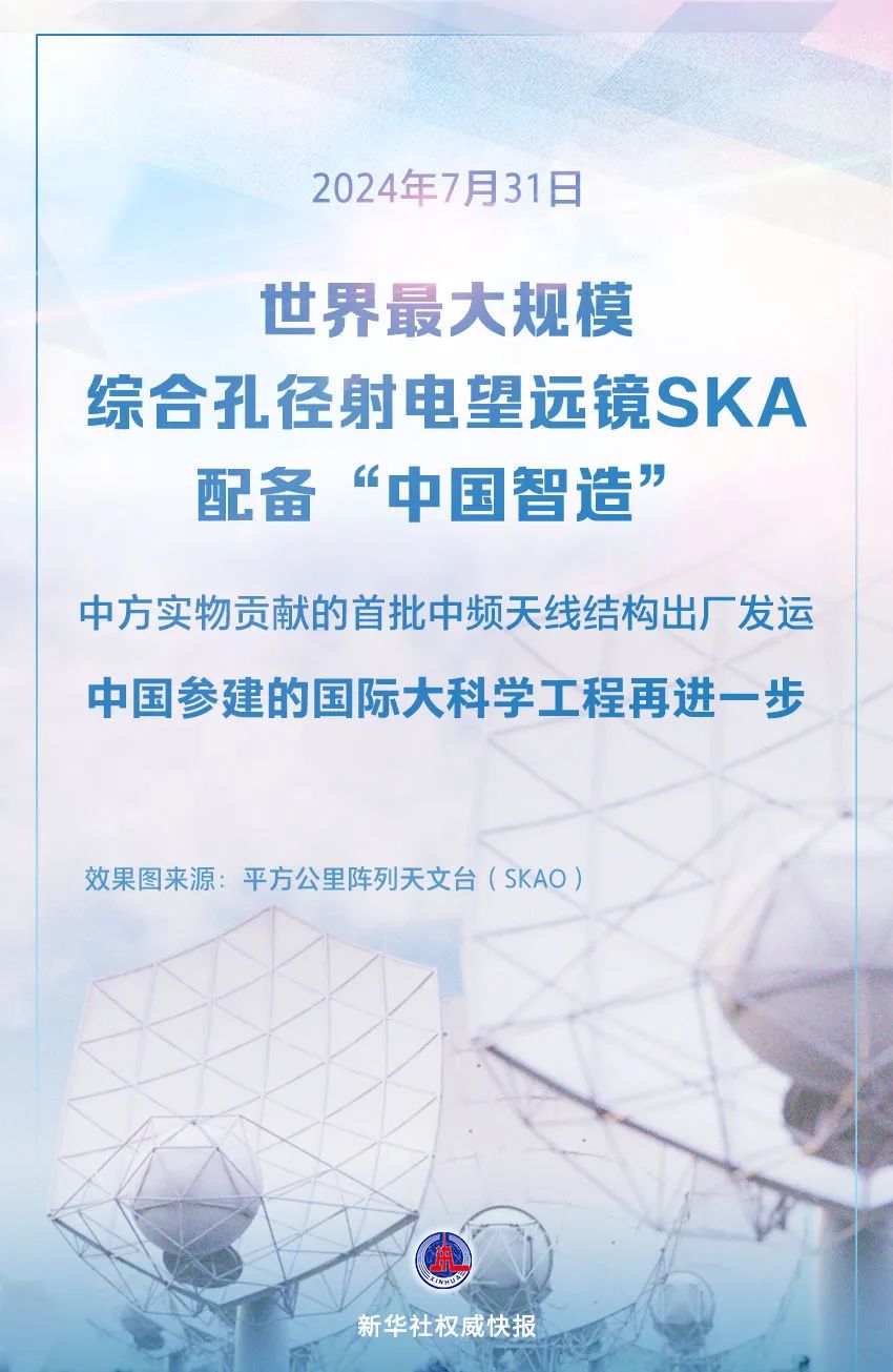 七月三十一日,中国方向国际组织平方千米天文台(SKAO)第一批平方千米射电望远镜实物奉献(SKA)河北石家庄高频天线结构完成出厂验收,出发运往南非SKA高频天线站。这标志着中国在参与SKA建设的道路上迈出了坚实的一步。
