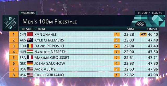 在半决赛阶段,潘展乐游出。 47 秒 总分第一晋级决赛21。