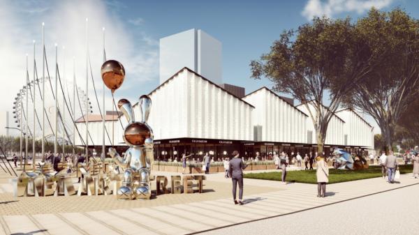 依托海河和未来地区的整体定位,盘活原乳胶厂空地和现状停车场地块,形成海河文化创意空间。海河文化创意空间通过三路未来慢慢打造的链接,与百年美学空间融为一体。
