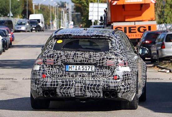 车侧过渡伸展顺畅,路试车配有黑色多辐轮圈。预计未来市场版会调整,很有可能会提供不同设计和尺寸的多种选择。尾部水平尾灯组重新设计,但最亮的一定是底部两侧有四个圆形排气口,营造出强烈的运动感。