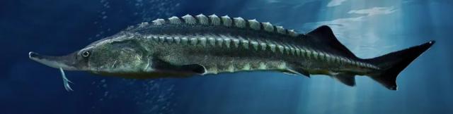 上述:鲟鱼尺寸极大;出土的鲟鱼化石