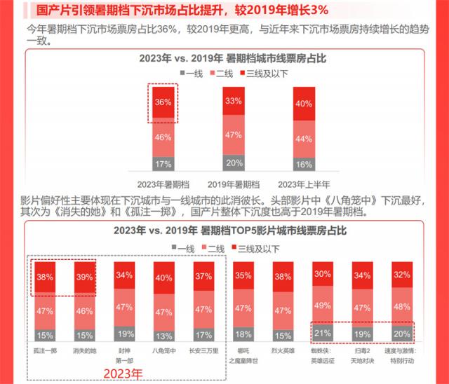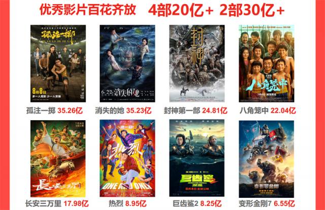 有别于 2019 年,2023 年度暑期档的成绩依赖于多部高票房电影并驾齐驱,而非单一优秀选手异军突起。报告显示,今年夏天,《孤注一掷》、《消失的她》、《封神第一部》、《八角笼》等四部国产电影的票房都达到了。 20 超过1亿元,但现在 2019 2008年,只有一部电影《哪吒魔童降世》超过了一部。 20 亿元,以 50 票房1亿元夺冠。