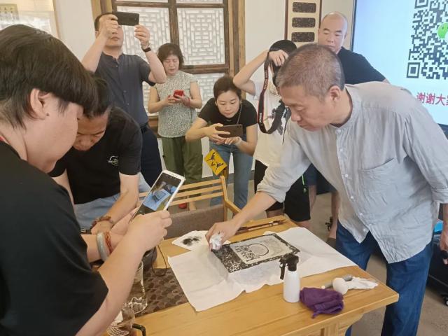 张葆冬讲解了每部作品的文化内涵和美好含义,并在活动现场举办了金石公益讲座,展示了拓展技艺。省会书画界、金石界领导和金石书画爱好者参加了活动。