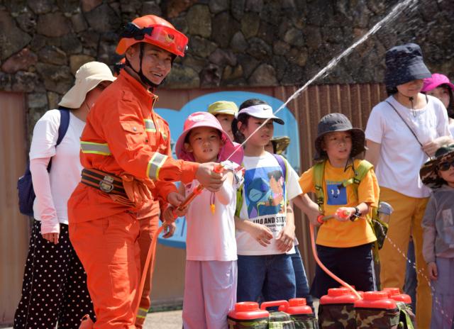 活动当天,公园消防仓库门口。在员工的指导下,10 许多“小护林员”依次穿着工作服,戴着面具,“感觉自己的确成了护林员,一份非常神圣的工作”。而且当“小护林员”操作工具,风扇传来,灭火器喷发,打火把摔倒时,现场更是连连尖叫,“哇,帅呆了!"即使是下一次巡山,“小护林员”们还是很感兴趣,"一直很好奇护林员叔叔的背包里装着什么?这次终于可以一探究竟了,水,食物,药物,简单的工具,真是个百宝箱啊。"