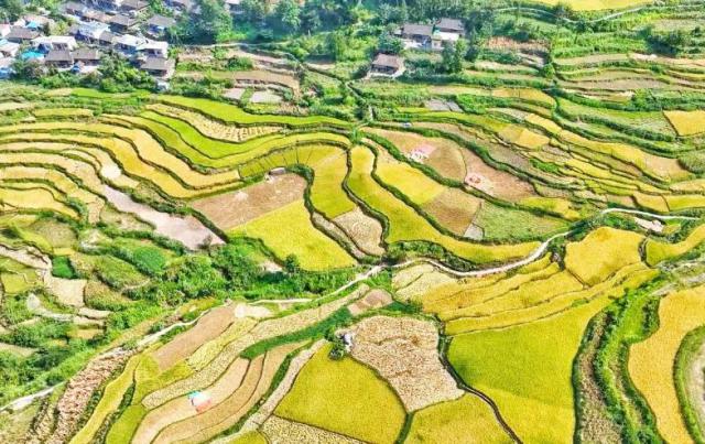 9 月 19 日本,在花戛乡天门村新寨组的稻田里,我们看到完美的稻粒饱满,随风摇曳,金色的波浪滚滚而来,像金色的海洋。微风中,醉人的稻香依稀飘落,昆虫和青蛙的叫声此起彼伏,是一幅丰收的美丽风景。