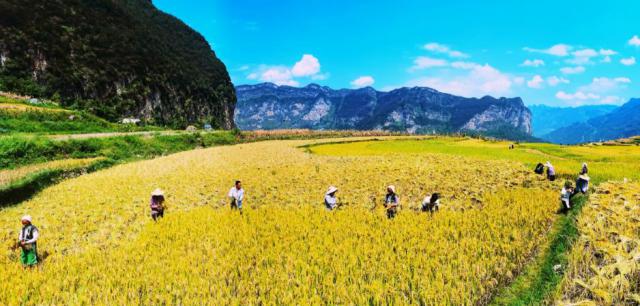 稻香农民忙!水城区花戛乡2100亩稻谷喜获丰收