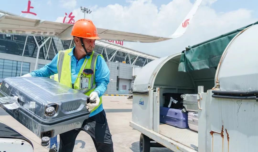 机坪空侧的工作区域没有天花板覆盖。在滚滚热浪的“燃烧”下,理货员完成了板箱号确定、条码清理、外观检查等一系列工作。根据操作规章和程序,确保板箱100%接受。