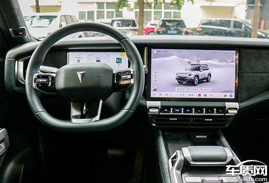2024 款深蓝 G318 搭载的 10.25 英寸全液晶仪表及 14.6 英寸中控面板均采用嵌入式设计,与中控台完美融合。虽然较宽的黑边稍微影响了观感,但总体上并不伤人。系统 UI 设计简洁大方,操作逻辑合理,上手难度不高。全液晶仪表不但界面设计得相当整齐,而且数据显示也比较清晰直观。