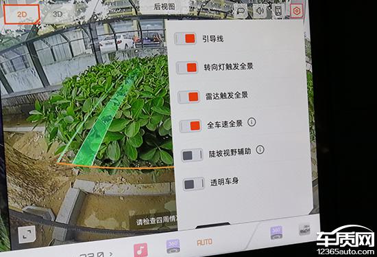 2024 款深蓝 G318 配置 360 全景图像,不仅支持多角度查看,而且模拟车辆 3D 动画片也很整齐,尤其是透明底盘更是相当实用。另外,影像画面中还配有可随意的倒车辅助线,可供驾驶员参考。实际测量表明,在白天阳光充足的情况下,倒车影像画质清晰,畸变控制也非常得当。设置页面提供了很多功能调整,如导线、方向灯触发全景、雷达触发全景、斜坡视线协助等。,可以满足日常使用的需要。