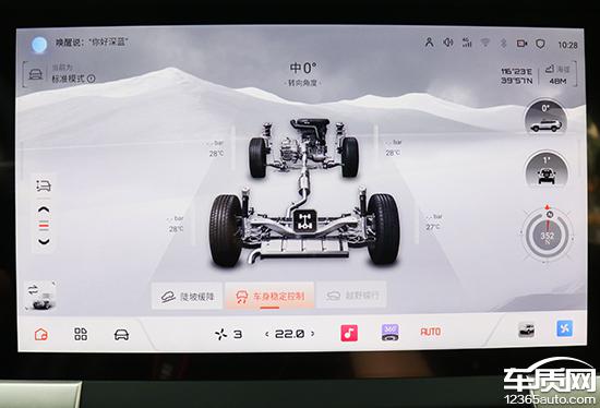 2024 款深蓝 G318 汽车系统的主页是与越野相关的车辆设置,相当“硬核”。屏幕底部的快捷栏相当好用,应用页面设计传统,图标和字体尺寸适中,观感好。