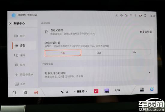 就语音交互而言,2024 款深蓝 G318 支持语音分区唤起识别,语音持续识别,可见即可说,整体表现可圈可点。实际测量表明,语音系统能更快、更准确地执行指令,具有良好的交互感。在设定方面,不仅可以定制名称,还可以设置持续对话的时间。另外,用户还可以在助手定制的选项中定制助手的形象和声音。除官方预设的语音包外,甚至可以通过车主 APP 录制独特的个性化语音包,玩法非常有趣。