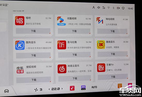车辆系统内置应用商店,APP 不仅数量众多,而且种类丰富,客户可以根据自己的需求下载。遗憾的是,汽车系统没有配备传统的收音机,只能通过下载网络广播来替代。