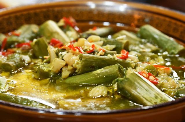 从陆游的诗中可以看出,用苋菜做的汤是多么迷人。湘菜含有皮蛋苋菜汤,是用皮蛋做成的浓汤底,然后加入鲜嫩的苋菜叶。可想而知,红绿相间,皮蛋密密麻麻,苋菜嫩滑,两者的鲜味交织在一起,爱皮蛋的朋友可能会垂涎三尺。
