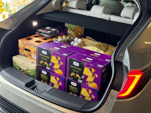 而且容量超大的后备箱感觉也相当不错,刚拿到车就是端午节,公司组织去商超买礼物,极其精彩。 2 作为购买礼品“载货”的重担,同事十几个人的礼品很容易放下,超级实用。