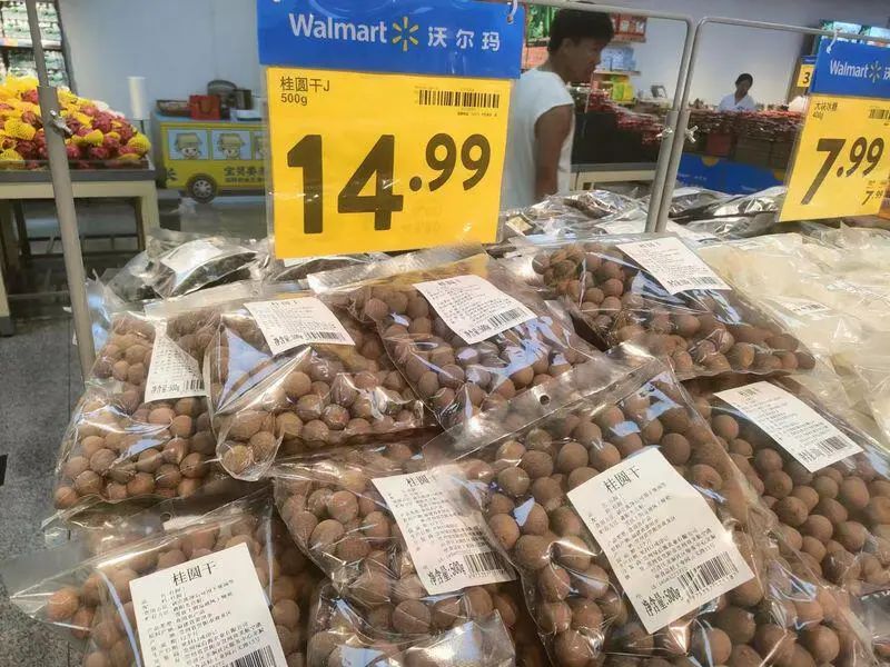 记者还走访了盒马鲜生、永辉、沃尔玛等超市,发现只有永辉超市有新鲜的桂圆,而且价格便宜,每公斤16.8元。