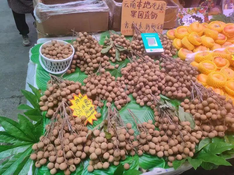记者走访了农贸市场和街头小贩,了解到市场上卖的新鲜桂圆都来自云南保山。其中,大观篆新农贸市场的桂圆价格一般为25元/KG,东华新迎农贸市场价格一般在18-20元/元之间。KG,街边小贩出售的桂圆为15-20元/元。KG。