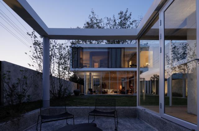 透明的客厅模糊了室内外界限,使房屋与乡村更好地融合。
