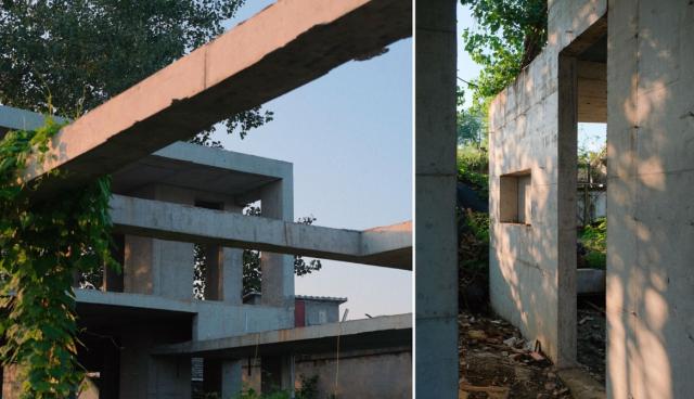 在施工过程中也闹了不少“笑话”:农村的施工队伍在做顶面的时候,模板一拆下来,就发现有几个洞,怕我们生气,就自己补了混凝土后期。事实上,混凝土建筑注重一次成型,这是一个禁忌,但我们保存了这个疤痕,这是一个有趣的记忆。