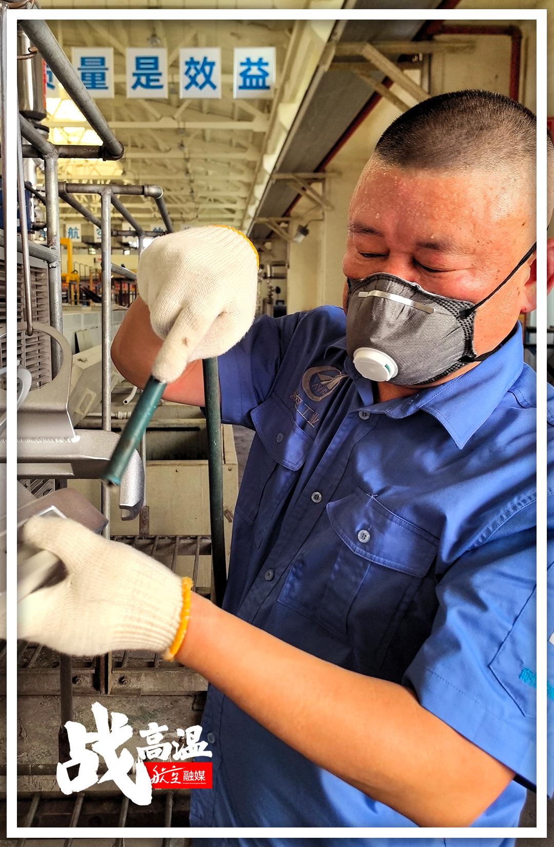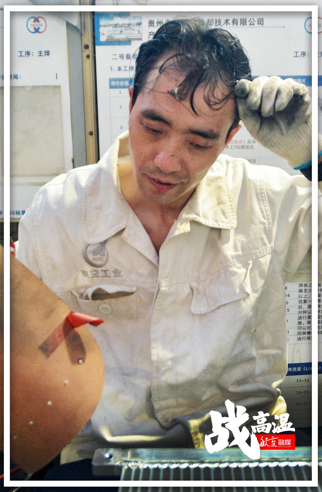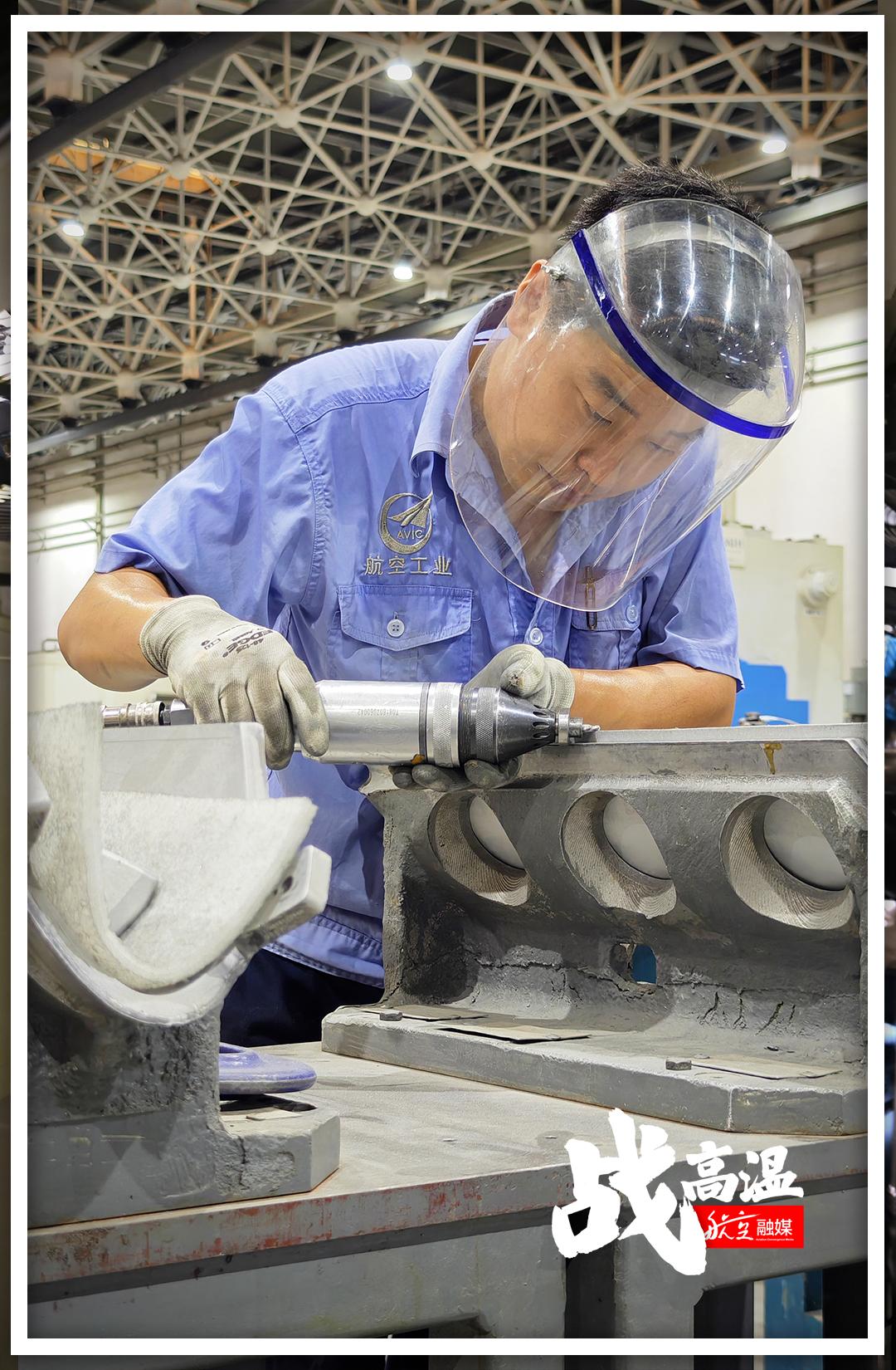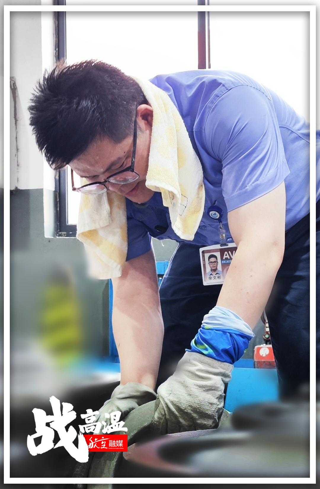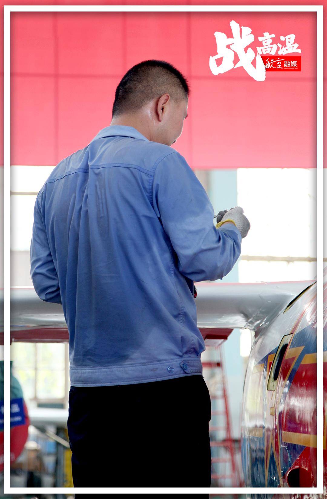 烈日烘烤的不仅仅是室外的地面,还有工业厂房里的“蒸烤箱”。与在外场挥汗如雨相比,车间里“高温作战”的航空人员一点也不能懈怠。