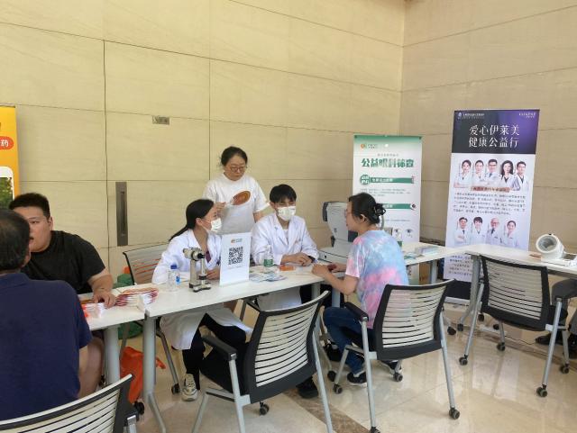 伊莱美医疗美容医院和海燕眼科分别由建筑工作人员提供皮肤健康检查、血压测量、口腔检查和视力检查、眼病检查等待公益服务,让楼内员工能及时了解自己的健康状况,增强健康观念。