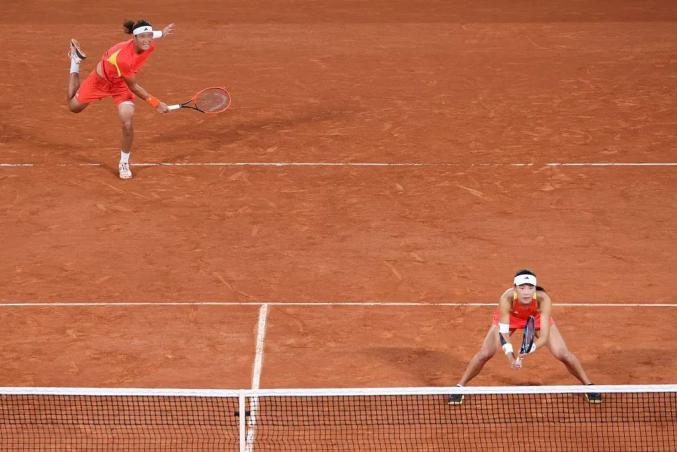 △巴黎奥运网球混双半决赛:张之臻/王欣瑜