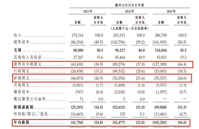 2021 年、2022 年及 2023 2008年,越疆科技研发费用为 4687.3 万元、5205.4 万元、7052.7 一万元。与此同时,其销售和分销费用分别为 6363 万元、8927.4 万元、1.27 亿元,其中广告及推广费用各期分别为 853 万元、843.9 万元、1760.9 万元。