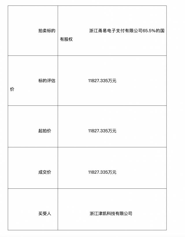 瑞财经 刘治颖 近日,宁波市公共资源交易电子服务系统(永易阳光)网站发布公告显示,浙江永易电子支付有限公司(以下简称“永易支付”)65.5% 国有股已经成功完成了竞拍交易。