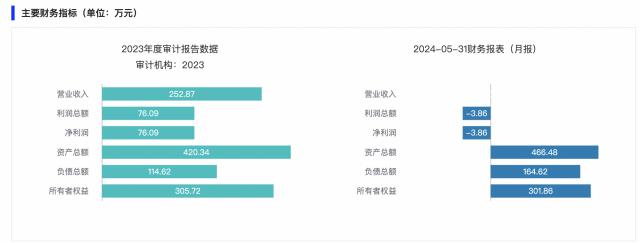 截至 2024 年 5 月 31 日本,目标企业无收入,净利润 -3.86 一万元,总资产 466.48 万元,所有者权益为 301.86 万元。