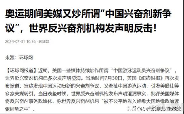 你有这种感觉吗?每当中国运动员在国际赛场上表现出色时,总会有一些别有用心的人跳出来反对。不是,巴黎奥运会游泳赛程刚过一半,美国媒体就迫不及待地抛出了一颗“重磅炸弹”。