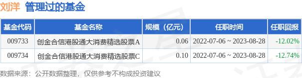 刘洋女:中国香港,香港中文大学博士。2015 年 9 每月加入香港树仁大学,担任会计系讲师 ;2016 年 7 每月加入恒生投资管理有限公司,曾任基金经理助理、基金经理。 ;2021 年 12 每月加入创金合信基金管理有限公司,现任基金经理。2022 年 7 月 6 创金合信港股通大消费优选股票型发起式证券基金基金经理日起担任。