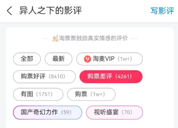 而且《默杀》和《异人之下》的票房差异走势,更能看出当前大众口碑对市场影响的复杂性。 以淘票评价为例,《异人之下》的差评/好评分别为4261和8410,差评/好评率几乎达到50%,而《默杀》的差评/好评分别为1462和12526,比例仅为11%左右。