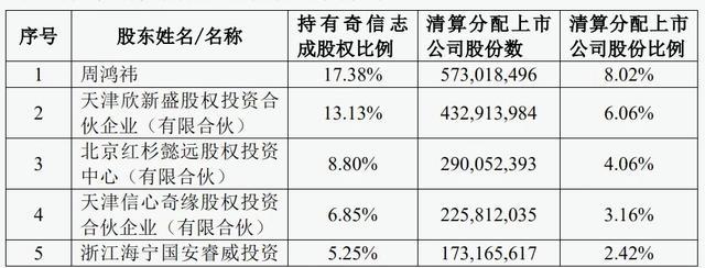8 月 2 日晚间,360 公司发布公告称,公司控股股东奇信志成科技有限公司(以下简称奇信志成)解散清算。其持有的 360 公司 46.14% 股份将通过非交易转让方式分配给股东。