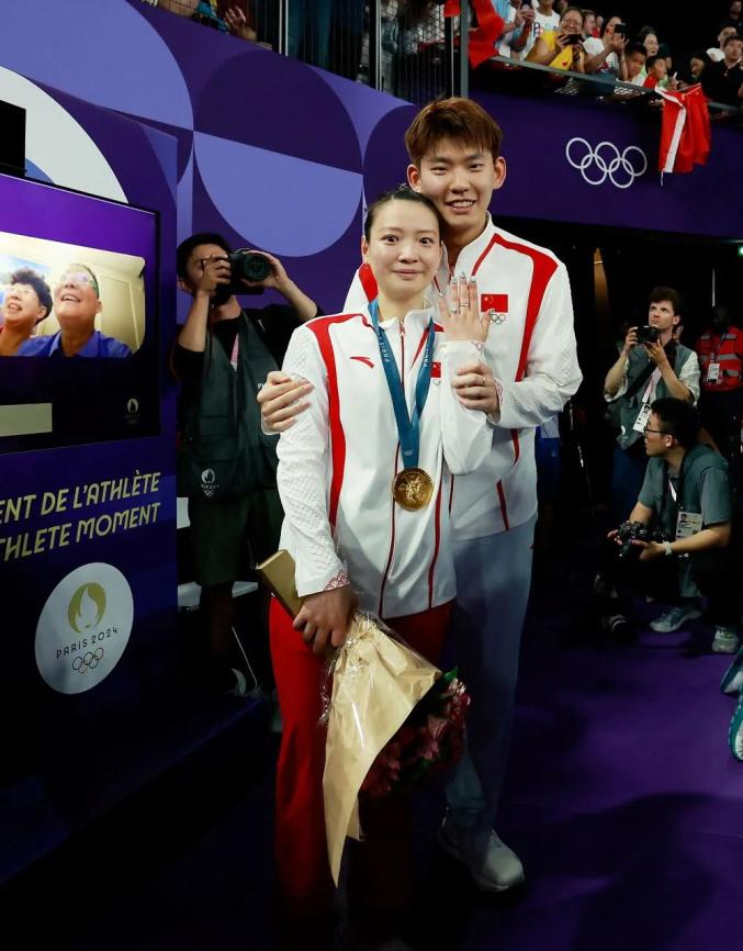 ↑黄雅琼(左)和刘雨辰展示钻戒。
