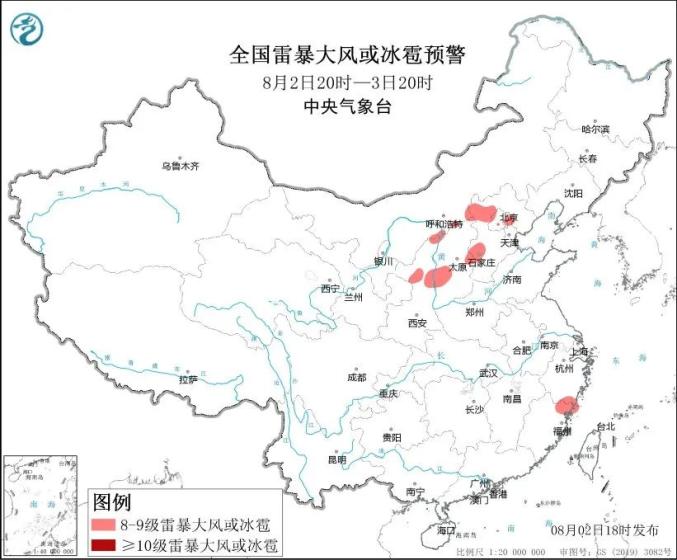 8月2日18时,中央气象台继续发布强对流天气蓝色预警: