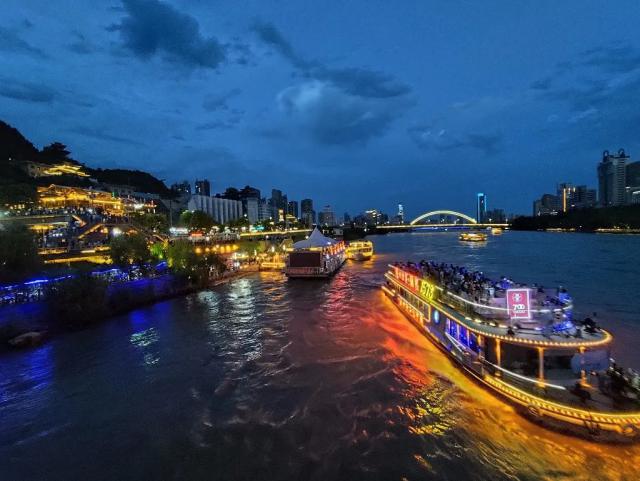 兰州水运集团工作人员宋若愚告诉记者:“夜游黄河是兰州水运集团推出的精品航线之一,自推出以来,深受广大市民和游客的青睐。自夏季以来,我们加强了航班,延长了服务运营时间,推出了水上民谣夜、水上音乐节等特色水上文化旅游项目。欢迎广大市民和游客乘船体验。”