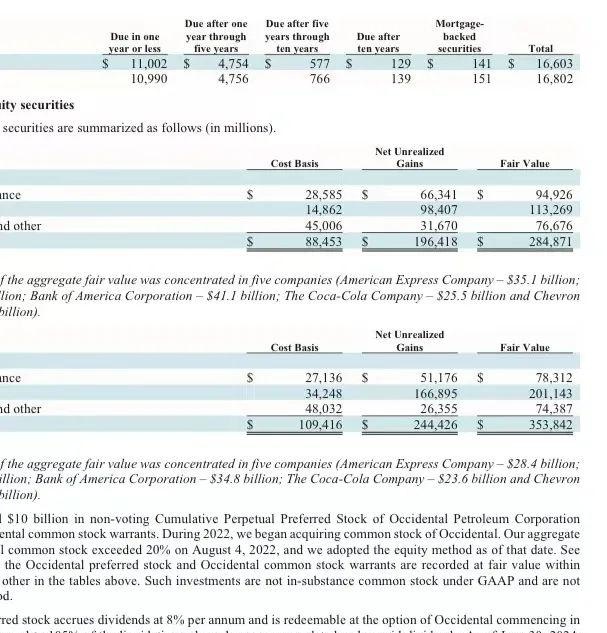 具体而言,拥有美国运通的价值为351亿美元,去年年底为284亿美元;拥有苹果的价值为842亿美元,去年年底为1743亿美元;拥有美国银行、雪佛龙、可口可乐的价值分别为411亿美元、186亿美元和255亿美元,去年年底分别为348亿美元、188亿美元和236亿美元。