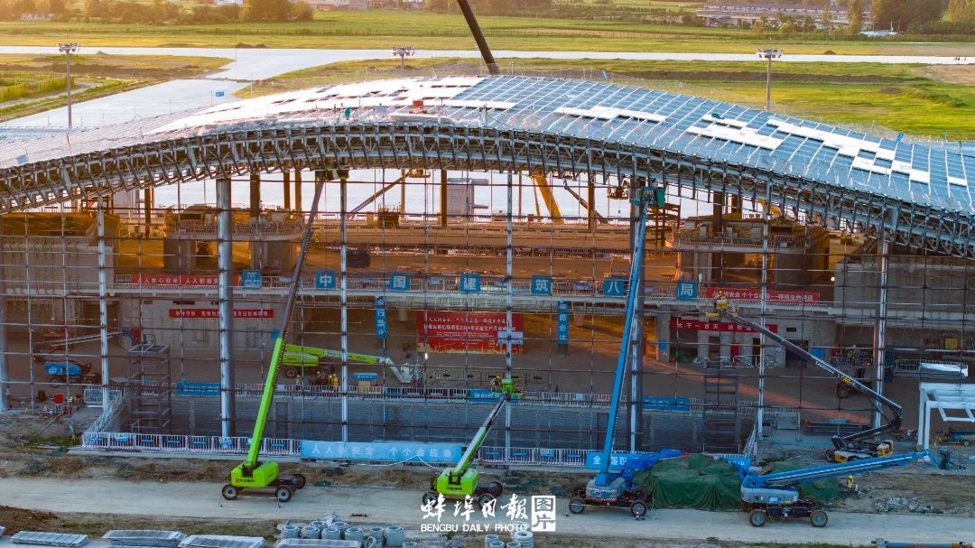 航站楼、跑道、航管楼、塔台等建筑相继封顶。