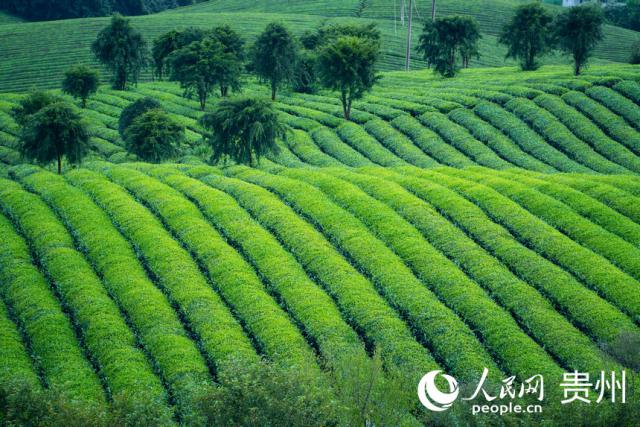 8 月 1 日本,在贵州省遵义市湄潭县永兴镇中国茶海景区,茶叶生长得恰到好处,随着地势的起伏,一垄垄茶树向远处蔓延,景色极其壮观。