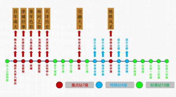 地铁 11 号线车站以海河蓝为基调,与海河文化相契合,并设有多个特色车站。