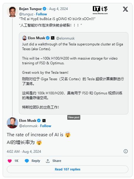 IT 世家 8 月 4 日消息,埃隆・马斯克 ( Elon Musk ) 在参观了最近建成的得克萨斯州非常计算集群之后,周末透露了这家工厂的名字。