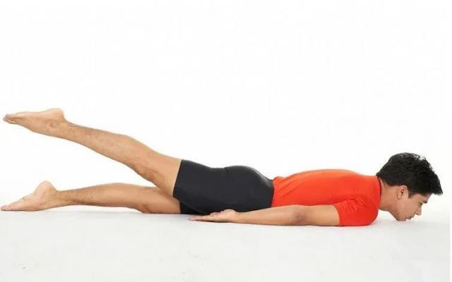 由两腿同时抬起到两腿轮流更换完成。很多姿势都可以采用这种降阶练习方法,比如瑜伽里只抬腿的蝗虫式。