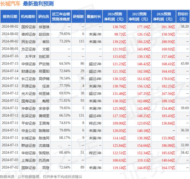 根据近三年发布的研究报告数据,证券之星数据中心中金公司陈雅婷研究员团队对该股进行了深入研究,近三年的预测准确度均值为 预测79.89% 2024 年度归属净利润为利润 120.05 十亿,根据现价转换预测。 PE 为 16.23。
