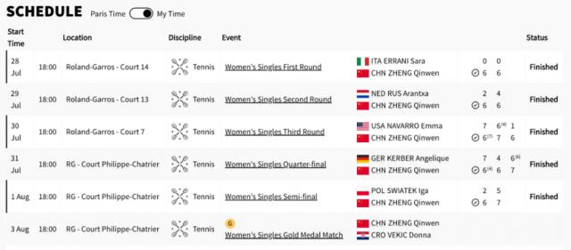 郑钦文是本届奥运会的女单 6 数字种子出战,连续遭受战斗。