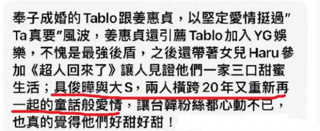 具俊晔与大 S,两人横跨 20 年复一年的梦幻般的感情,让台韩粉丝无法言喻,也真的觉得自己好甜好甜。
