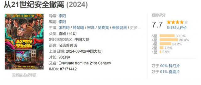 特别是这部《从》 21 “世纪安全撤离”,豆瓣直接发布。 7.7 评分。国产暑期电影仅次于《走走停停》和《落凡尘》。它的第一周票房可能很难突破1亿元,甚至最后的票房也只是 1 一亿多点,但是强大的口碑仍然让它在这个暑期档占据了一席之地。